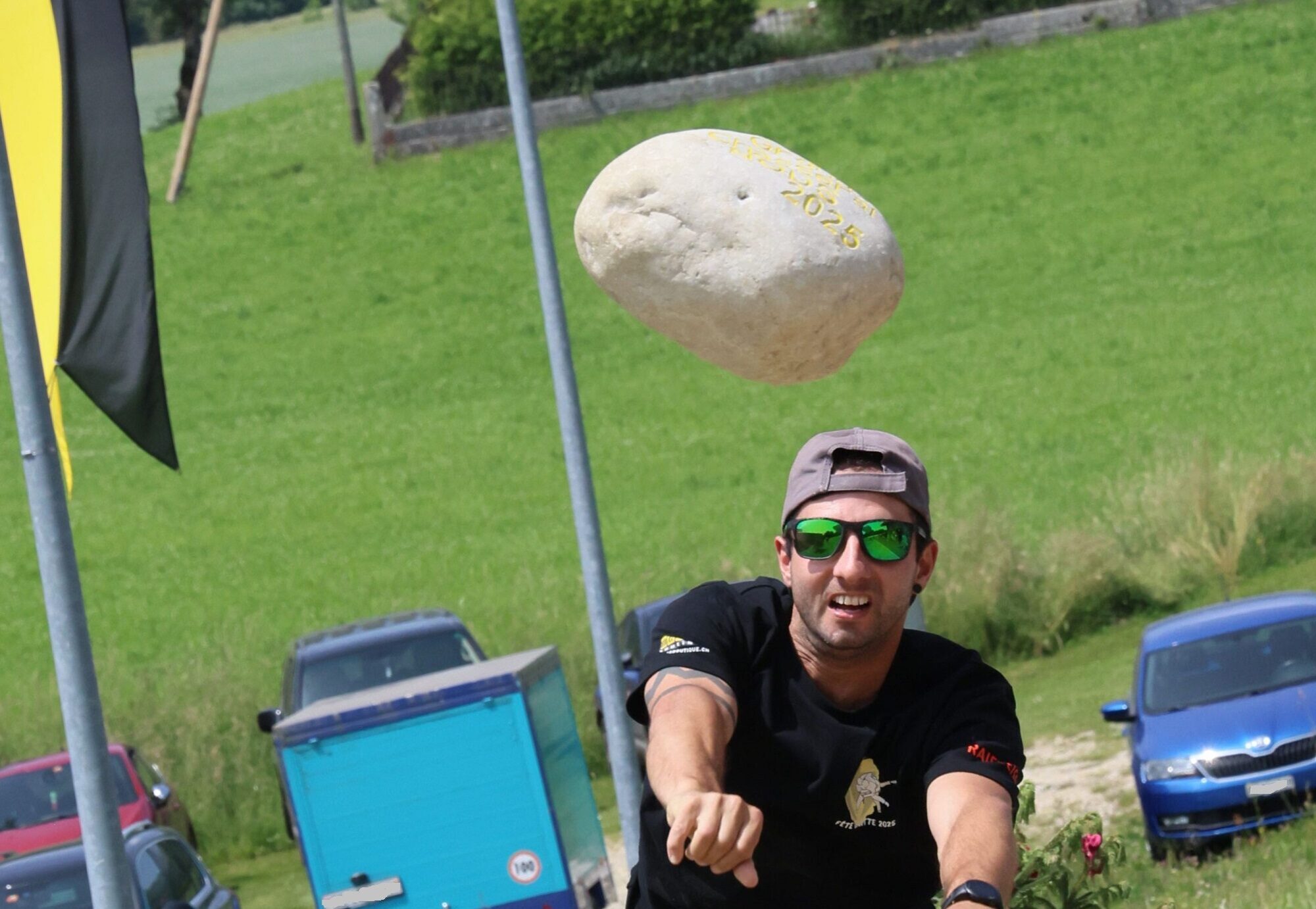 Un joli calcaire qui tient bien dans les mains pour un poids de 27.5 kilos. C’est le modèle grand public qui permet de s’initier au lancer de la pierre et qui sait, peut-être éveiller l’intérêt pour se préparer au lancer de la Grand Chasseral.