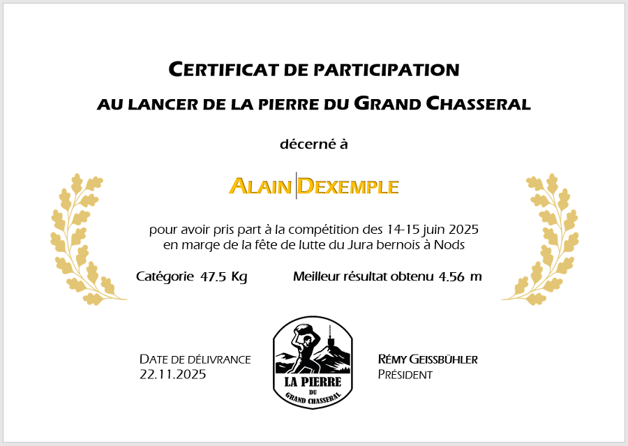 Chaque participant reçoit un certificat, pour autant que le lancer soit validé.